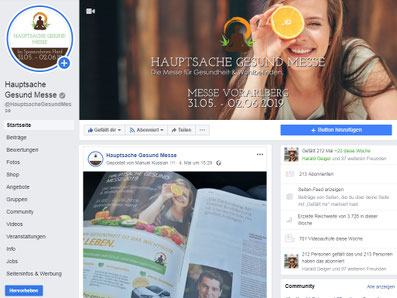 Zusätzlich veröffentlichen wir Ihr Portrait inkl. Verlinkung auf unserer Facebook Hauptseite: "Hauptsache Gesund Messe"
